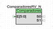 Este componente posee dos comparadores en su interior, uno de ellos compara la entrada con 40 y el otro con 40, cuando E es igual a 40 la salida de S1 se coloca en un 1 lógico, cuando E es igualo a 60 la salida en S0 se coloca en el valor de un 1 logico.